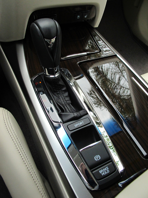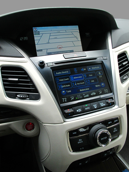 Este botón, en conjunto con el resto de los selectores de la consola o en la pantalla táctil, gobiernan toda la electrónica imaginable a bordo del vehículo. Tan sofisticado como un Audi, aunque probablemente a pesar de complicado también más amistoso en explotación que el coche alemán. El RLX comienza a ser un auto no apto para mayores de 60 años… |