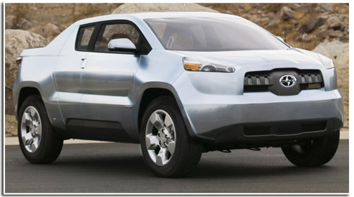 Mini pick-up: El concepto A-BAT —foto que encabeza esta página—, de Toyota, no ha muerto, y resulta que Scion lo quiere. Este pick-up sui generis —que más bien será un vehículo de correos y reparto— sería menos refinado que la versión bajo Prius y se espera que llegue aquí como modelo 2014.