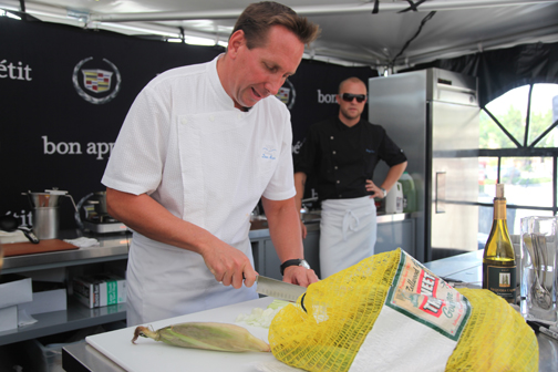 James Max (foto encima) tiene su sitio, nombrado 3030 Ocean, en tanto que Johnny Vinczencz (imagen inmediatamente debajo) conduce el Johnny V Restaurant, ambos en Fort Lauderdale, en la Florida, muy cerca al Norte de Miami y al Sur de Boca Raton (en realidad a mitad de camino entre ambas urbes). Los maestros cocinaron delante de la audiencia. |