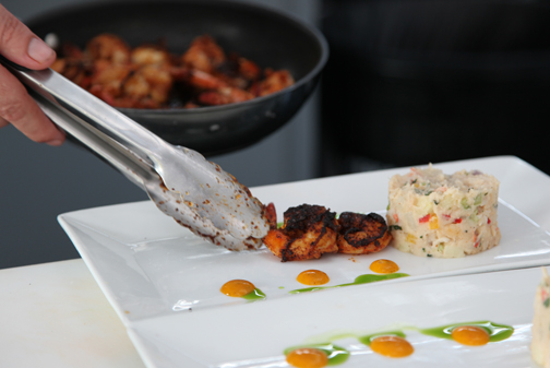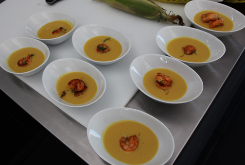 | Johnny V presentó el Camarón estilo BBQ de Cayo Hueso junto con la Ensalada de patatas y langosta y salsa de frutas y de mango. James Maxx ofreció la sopa de maíz con curry con Salmón Rosado picante estilo Cayo Hueso, que resultó la agraciada por el jurado (por si el lector quiere practicar en casa, ambas recetas se ofrecen en inglés al final de este reportaje). |