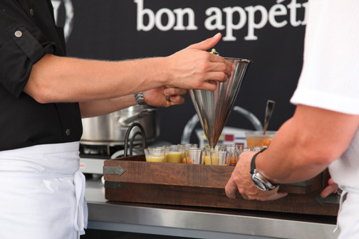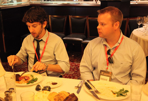 ¿Y qué de los buenos autos y la buena mesa cual anticipamos arriba? Pues, allí se nos anunció que disfrutaríamos de las emociones de un duelo culinario entre dos chefs locales, Johnny Vinczencz y Dean James Max. A los periodistas de automovilismo le fue ofrecida la oportunidad de ejercer como jueces. De nuestra región aceptaron puesto en el jurado Jaime Flórez y Paul Borden. |