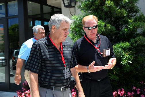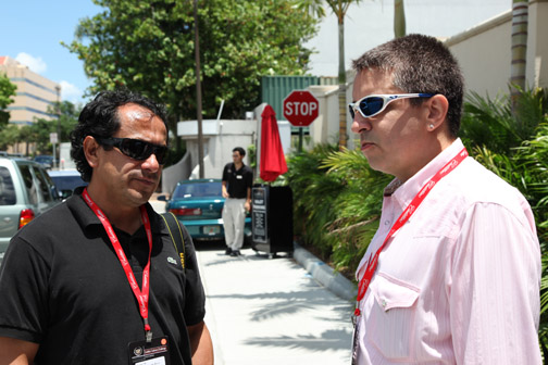 En la cita de Boca Raton, los periodistas de automovilismo fuimos agasajados con privilegios especiales. Asistimos, de la Capital del Sol, un puñado de ellos, todos miembros de SAMA: Jaime Flórez, Bill Adam, Paul Borden, Ileana Muñiz y Al Vázquez, Javier Mota y este servidor, Pepe Forte (foto encima mientras conversaba con Jim Vurpillat), convocados por el cordial Alex Vitale, PR de GM para la región quien —qué pena— a última hora hubo de poner a un lado el entusiasmo que desplegó en la invitación porque una severa gripe primaveral floridana nos privó de su presencia. Mas a modo de agradable compensación, contamos con la dedicación de la afable Monique Brentley (foto inmediatamente debajo), del Departamento de Comunicaciones de Cadillac. |