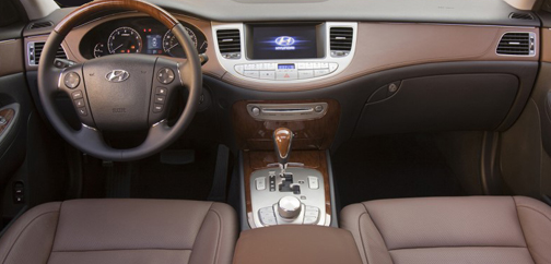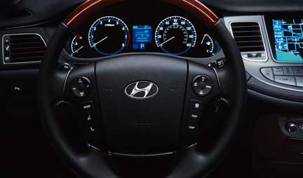 El Genesis con más testosterona —el V-8— añade a todo lo anterior aros de18", acentos exteriores cromados, limpiaparabrisas sensibles a la lluvia, volante en piel y madera, retrovisores anti-destello y algunas exquisiteces más. Empero la imbricación de detalles de uno y otro modelo a veces difuminan entre sí porque he visto V-6's sin el stereo Lexicon y sí con otros componentes del V-8 (que trae 15 bocinas). Algunas de estas mejoras originales del 8 instaladas en el 6 se deben a la alternativa del llamado Premium Package, que entre otras características incluye lámparas de xenón, computadora de jornada, audio envolvente Logic tipo surround-sound, sistema de comunicación telefónica Bluetooth, sistema de navegación con disco duro, y cámara de vídeo para la marcha atrás. Mi unidad de pruebas, un V-6, contaba con un detalle encantador: luz cenital interior blanca estilo fluorescente con efecto teatral. |