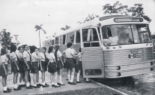 Estos autobuses cubanos pre 1959 —ver la foto encima—, por su similitud con los productos de Detroit, mucha gente los creía marca GM, pero no eran así en carrocería, aunque sí en chasis y en motor. Estos autobuses cubanos poblaron rutas cortas urbanas e intermunicipales y llenaron otras necesidades de transporte, como el fabril y el escolar. Grandes colegios como el Candler, Baldor, La Salle y Belén poseyeron flotas de estos vehículos. En el caso de los asignados a transporte de colegiales, se les dotó inteligentemente de dos puertas, una a cada lado, para que el estudiante al abordar el vehículo a al abandonarlo no tuviese que cruzar la calle. Estos autobuses merecen un artículo aparte. Después de 1959, intervenidos por el gobierno esos centros docentes, sus autobuses pasaron todos a integrar una flota estatal conocida como Omnibus Escolares, y se les pintó igual, de gris con una raya roja. |