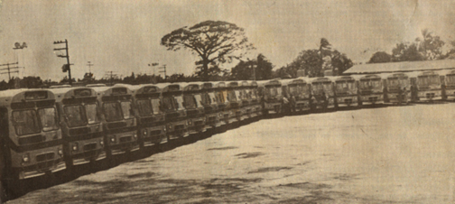Una foto de la prensa cubana que muestra un grupo de autobuses Girón XII listos para entrar en servicio. |