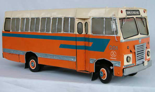 La Mambí original y las Girón I y II —en lo adelante designadas cronológicamente con números romanos— eran muy semejantes. Autobuses metálicos, remachados, no habrían rebasado hoy la mínima prueba de seguridad para obtener una autorización de fabricación y/o circulación. Parecían haber sido dibujados en los años 50 y ejecutados con desgano —diría que hasta con complejo— 20 años después. Y contaban como antecedente con un par de experimentos guagüiles que vimos de niño en un exhibición en los jardines del Ministerio de Comunicaciones a finales de los 60: el autobús Cocodrilo, y el Miscelánea —como su nombre indica, éste elaborado a partir de una diversidad de partes ajenas—, que daban la impresión de haber sido hechos a puro martillazo en una carpintería. |
