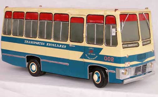 Esta es una maqueta del Girón II, ejecutada por el habilidoso modelista cubano José Francisco Reyes Fernández que resume muy bien el look del vehículo. Es difícil hallar fotos de las primeras "Girones". Aquí se observa la parrilla de "segunda generación", de barras horizontales, como se describe en el texto. Debajo, una foto de la Girón II en plena faena escolar: |