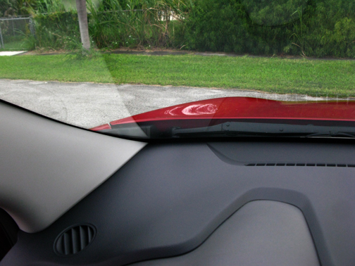 La visibilidad no es de primera, porque la cristalera es de corte contemporáneo, más bien comprimida, sin muchas extensiones. Resulta agradable que desde los asientos delanteros, se percibe el abultamiento de la carrocería en cada esquina sobre el guradabarros (ver imagen inmediatamente debajo): |