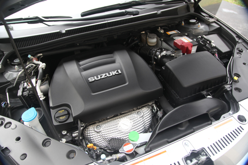 | Inicialmente, el Kizashi se ofrece sólo con un motor de 4 cilindros de 2.4 litros que genera 185hp y 170 libras por pie de torsión. Nuestra unidad de pruebas venía dotada de transmisión automática. Tanto el embrague como la palanca, son extremadamente suaves. De modo que quien espere rigores deportivos de manejo del Kizashi, no quedará feliz. |