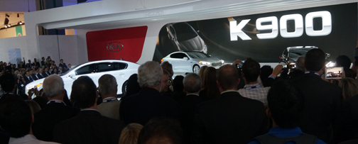 | ...e igualmente uno de los atractivos del salón fue la develación del Kia K900, el equivalente al lujoso Genesis de la compañía prima hermana, Huyndai. |
