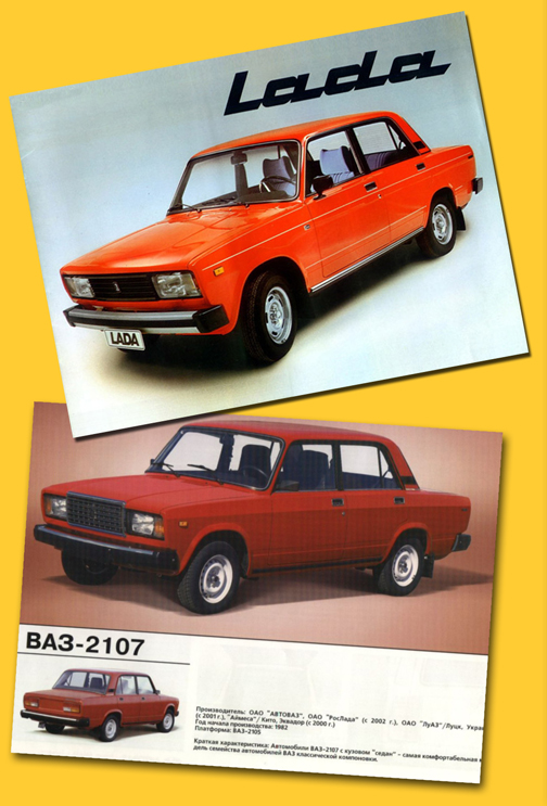 El primer vehículo no salió a la calle con el nombre de Lada, sino el de Zhiguli (se pronuncia Yugulí), por los montes de igual nombre, una importante formación orográfica del país —la motocicleta rusa de gran porte, copiada de la BMW de la Segunda Guerra Mundial, se llamaba Ural—. |