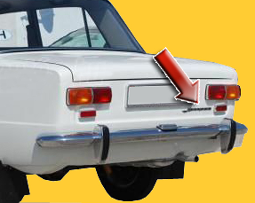 | Lamentamos la baja resolución de esta imagen, en la que se puede adivinar, por su largo en contraste con el breve de Lada, el nombre de Zhiguli a relieve en la parte trasera del vehículo según indica la flecha. |