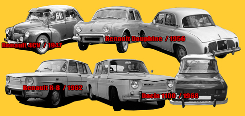 | Tampoco FIAT fue la primera ni la única automotriz capitalista en lanzar un “puente hacia atrás”, pues la Rumanía de Nicolae Ceauçescu fabricaba el Renault R-8 —una evolución del 4CV de 1947 y el Dauphine de 1956—, bajo el nombre de Dacia 1100, de 1968 (Dacia era el nombre original de la milenaria nación, y dacios sus moradores). |