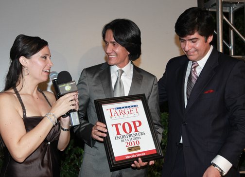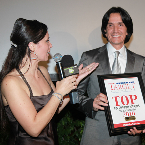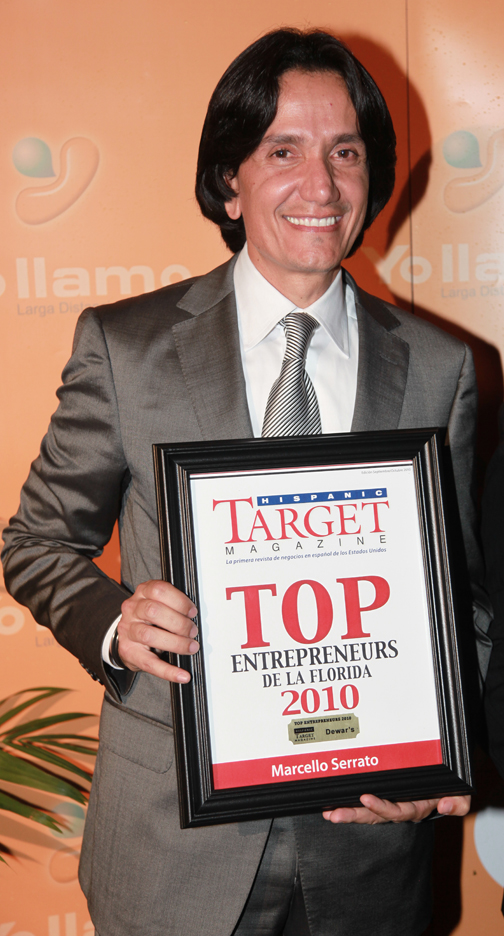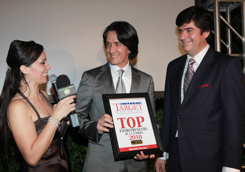 En la tarde/noche del miércoles 13 de octubre del 2010, la revista HISPANIC TARGET, con el patrocinio de Dewar’s, entregó un reconocimiento a Marcello Serrato como uno de los empresarios latinos más prominentes del Sur de la Florida. Se trata del premio Top Entrepreneurs 2010 que otorga la citada publicación que edita Eduardo Hapke. Serrato es un exitoso hombre de negocios colombo-americano, presidente y fundador de Prestige Auto Specialists, con base en Boca Ratón. La entidad, conectada con la industria automotriz, maneja casi una veintena de marcas de carros. Prestige, que ya cumplió 25 años, establece un puente indispensable entre los fabricantes de coches y los medios, y diseña la agenda de rotación de los autos de prueba para los periodistas de automovilismo del área, así como provee servicios de cortesía de primer nivel a importantes actos y personalidades. También garantiza logística y rutas de ensayo a los eventos de lanzamiento de nuevos modelos de autos. |