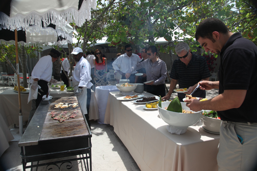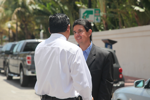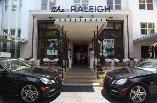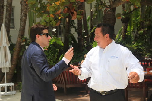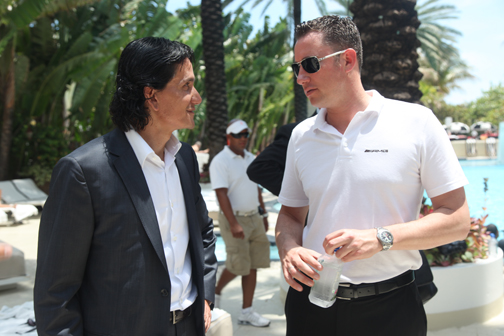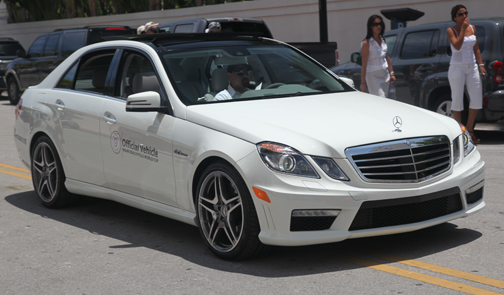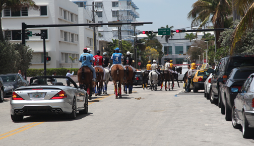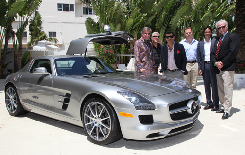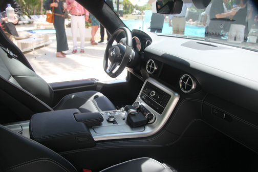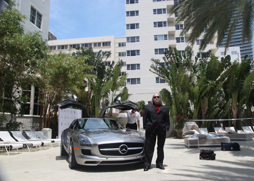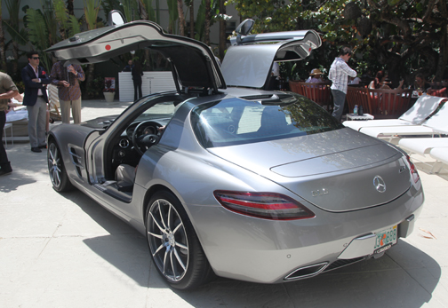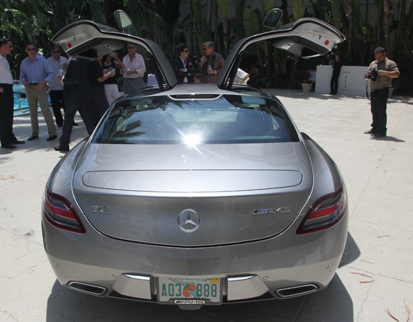 El privilegio de ver a la bestia, tocarla y oírla rugir, más no el de domarla. Eso fue lo que nos pasó al grupo de periodistas de automovilismo del Sur de la Florida que el viernes 23 de abril de 2010 acudimos a una presentación del espectacular Mercedes Benz SLS AMG 2011 en el trendy Hotel Raleigh de Miami Beach. El evento se efectuó en los alrededores de la piscina del hotel colindante con la playa, escoltada por vegetación tropical exuberante, y decorada con los turistas de todas partes del mundo que vienen a disfrutar del excelente clima de la Capital del Sol ya en temporada pre-estival. En dos palabras, hizo un día magnífico. Y justo en ese ambiente tuvimos el almuerzo tras el breefing técnico y el walk-around del coche. Naturalmente estuvieron presentes los ejecutivos e ingenieros de Mercedes, miembros de la junta ejecutiva de SAMA, y la plana mayor de Prestige Auto Specialists y sus hacedores, en tanto que dedicados coordinadores. El evento fue además patrocinado por la Copa Mundial de Polo de Miami Beach que agració a los invitados con un desfile de sus portentosos caballos.