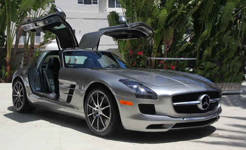 | Es una máquina 100% de aluminio —pesa sólo 3,573 libras, poco para su talla y motorazo—. La flamante obra de Mercedes es más liviana que el SLR McLaren también gracias a su carrocería de fibra carbón que rehabilita por primera vez en décadas en un modelo de producción las puertas en el techo que estrenara en 1955 el inigualablemente bello Mercedes Gullwing, el auto personal del maestro Fangio. Lo de “gaviota” viene porque con las puertas despelagadas, parece el pájaro con sus alas de silueta quebrada. |