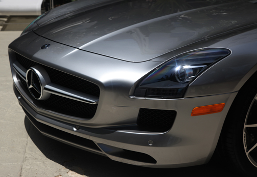 | No, no manejamos el Mercedes-Benz SLS AMG, posado allí al borde de la alberca cual otro vacacionista mas tomando el sol, y provocando en los asistentes la misma tentación que resiste en una dulcería un diabético con las manos atadas. Pero para consuelo, pudimos escuchar su motor, y no exageramos si decimos que el auto atrajo más miradas de admiración sobre su anatomía que la mas bella bañistas que flotaran por allí. |