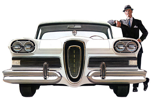 Edsel, contrariamente a lo que todavía hoy mucha gente cree, no era otro modelo Ford —como el Fairlane, por ejemplo—, sino la cuarta división de la compañía en el afán de aproximarse en diversificación a General Motors que para entonces contaba con 5 divisiones. Pero como el Edsel debutante de 1958 fue tan criticado y mal recibido —sobre todo por su estrambótica parrilla— casi al nacer Ford sabía que no superviviría como marca, así que decidió pasarle el Comet a Mercury. Por esta razón, al Comet se le dotó de una parrilla a lo Mercury, no como un Edsel. Sin embargo, otras partes de Edsel sí integraron la carrocería del Mercury Comet, como las luces traseras —que conservaron en la primera camada de vehículos de 1960 la letra “E” de Edsel como código de pieza—, la cabeza de la palanca de cambios, la botonería del panel, y hasta la llave de ignición, exacta a la del Edsel, pero cuya letra inicial fue solapada por una “C”. |