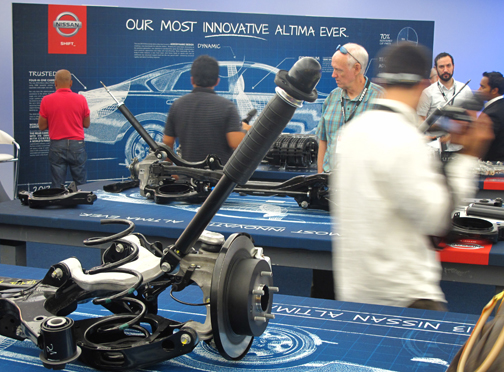 En la sala de presentación en los headquarters de Nissan fue ubicado un trío de asientos para que los comparáramos: uno del Altima saliente, otro del Hyundai Sonata y el tercero del nuevo Altima. Luego, durante la prueba de manejo, pudimos completar nuestra opinión. |