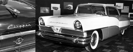 Pero el verdadero despegue de Packard —aunque no le valió de nada— llega en el año 1955 —un turning point en la industria automotriz norteamericana–, con un nuevo y bellísimo Clipper, que tiene su punto supremo en el convertible Caribbean, en esquema de ¡tres colores!, con medio timón de barco, cromado y a relieve añadido al logo, y que derrite de admiración a cualquiera (este auto merece un review por sí solo). |