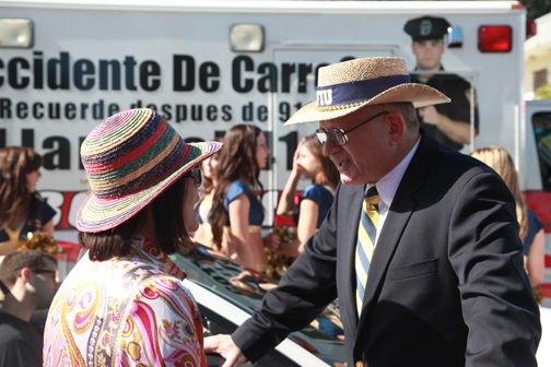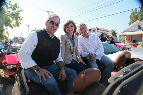 A diferencia del año pasado en que el elenco de la emisora desfiló a bordo de una carroza, este año lo hizo sobre convertibles.