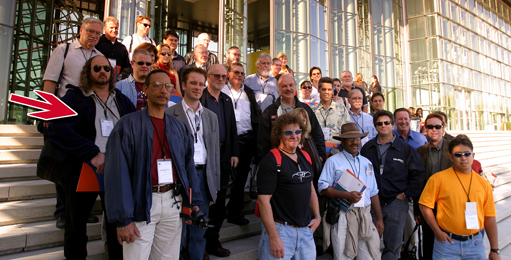 | Pepe Forte, editor de este website, señalado con la flecha en la foto colectiva de los periodistas de automovilismo que asistimos al lanzamiento del VW Phaeton en Alemania. |