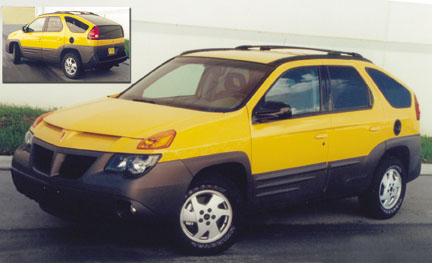 Aunque GM lo llama el cross-dressing de los SUV’s, su mejor definición es la “oficial” de SRV (Sport Recreational Vehicle): edificado sobre la plataforma del Montana, el Pontiac Aztek posee transmisión All-Wheel-Drive Versatrak y motor V-6 de 3.4L para 185hp, capaz de arrastrar 3500 libras. Mientras, sus prestaciones y performance, unidos a novedoso diseño, hacen de este compendio de soluciones una suerte de ornitorrinco metálico.