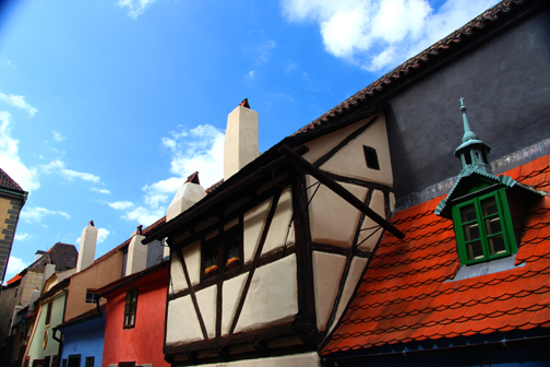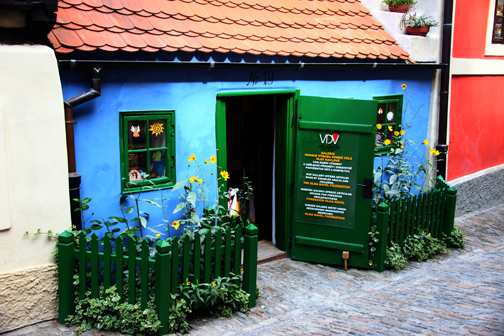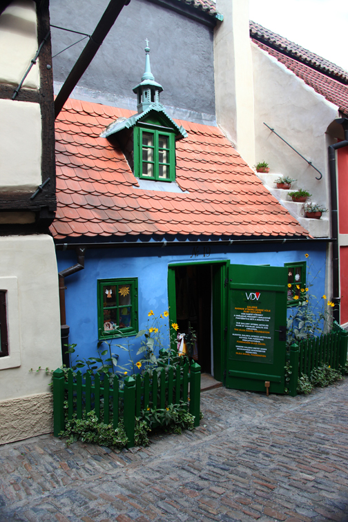 Al terminar la visita a la catedral, se puede hacer un recorrido por el llamado Golden Lane, una vieja calle dentro del complejo del castillo, muy interesante, compuesta por 11 casas históricas que, cual una vitrina al pasado, hace un paseo desde épocas tan remotas como el Medioevo y que son verdaderas reproducciones del modo en que los habitantes de Praga vivían y trabajaban antes. Una de estas casas, la señalada con el No. 22, y una de las primeras calle abajo (imagen encima), es en la que Franz Kafka vivió con su hermana.