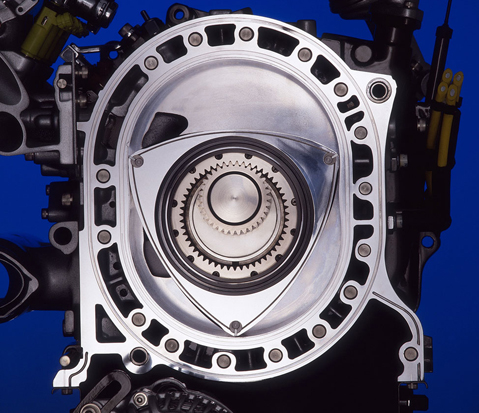 Sin duda, Mazda, el quinto fabricante automotriz nipón, ha sido la firma que más y mejor ha explotado comercialmente este tipo de motor de combustión interna que elude la clásica estructura de piston-pivote que se desplaza hacia arriba y hacia abajo dentro de un cilindro, para usar un gran núcleo que gira sobre su propio eje longitudinal y que comprime le mezcla de combustible y aire contra las paredes del bloque que lo alberga. El proceso de cuatro tiempos —admisión, compresión, explosión y escape—, se efectúa mediante un par de rotores de corte triangular equilátero con los lados arqueados, que giran dentro de un cámara.