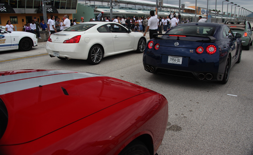 | Varios fabricantes de vehículos pusieron a disposición de los periodistas del ramo y miembros de la citada asociación algunos de los carros deportivos más atractivos del mercado, entre ellos el Chevrolet Corvette Z06, el Nissan GT-R, el Ford Mustang GT500, el Dodge Challenger y el Porsche Carrera 911. |