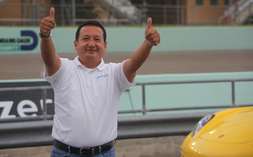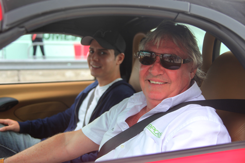 | Socios de SAMA, propietarios privados de coches de carrera, como Germán Botero, también llevaron sus vehículos para placer de los niños, que pudieron experimentar las emociones de la velocidad responsablemente. |