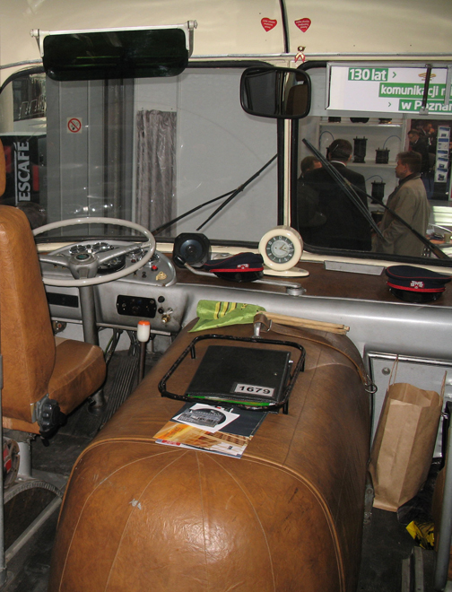El segundo chofer y/o cobrador de la tripulación del Skoda de carretera, viajaba en este asiento delantero, independiente. Cuando a finales de los años 60 esa plaza laboral fue eliminada por el gobierno en las rutas cortas para cortar salarios, un pasajero común podía sentarse ahí. De niño siempre me afanaba por obtener esa butaca, y alguna vez lo logré. Era como ir manejando el autobús (en esa época en Cuba se permitía, negligentemente, viajar a menores en el asiento delantero de los vehículos). |