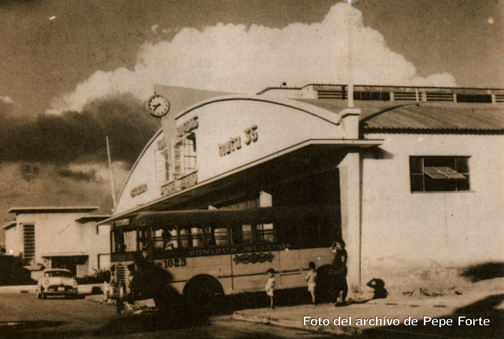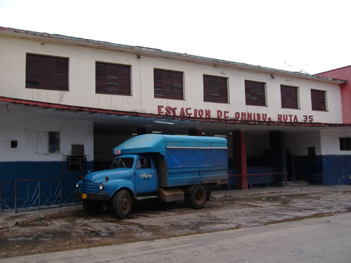 La ruta 35 de Artemisa, de los disueltos Omnibus Aliados, es una de las más antiguas de Cuba. En esta imagen (arriba) de 1950 se observa el carro 1023 de la citada ruta, un GM hecho en México sobre chásis de GMC con motor Chevrolet, modelo conocido popularmente entre los choferes como "la chata". Esta flota de vehículos fue sustituida por una de los checoslovacos Skoda después de 1960. En la imagen inmediatamente debajo se observa la hoy derruida estación de la 35 en Marianao, conocida como la de "El Lido", por su proximidad con ese cine. |