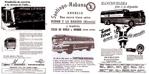 Con la tempranera ola de la llamada nacionalización de Castro en 1960 —el lector puede leer el discurso íntegro de "intervención" del novel dictador si presiona ahora justo sobre esta línea—, tanto para las compañías nacionales como extranjeras legítimamente establecidas en Cuba, las eficientes cooperativas de buses metropolitanos —los Omnibus Aliados (C.O.A.), los Autobuses Modernos, etc.— también cayeron bajo la guillotina estatal y fueron expropiadas por el gobierno y agrupadas en las por entonces llamadas Empresas Consolidadas de cada ramo. Y lo mismo pasó con las rutas interprovinciales como la línea Santiago-Habana, los Ómnibus Menéndez, La Cubana, La Flecha de Oro, La Estrella del Sur, Ómnibus Libres, La Matancera, Los Únicos de Cárdenas, etc. |