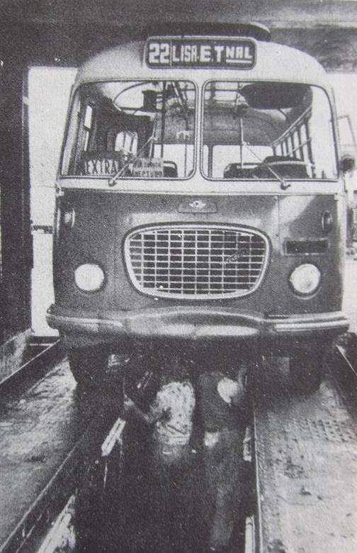 Esta es una imagen tempranera, posiblemente de 1962, de un RTO en la planta de engrase del paradero de La Lisa, que por entonces acogía las rutas 22, 86 y 133. La ruta 133 fue una de breve existencia, basada en autobuses soviéticos Zil 158 LiAZ, que posteriormente fueron enviados a cubrir las cuatro rutas de la ciudad de Matanzas, a unos 100 Km al Este de La Habana. |