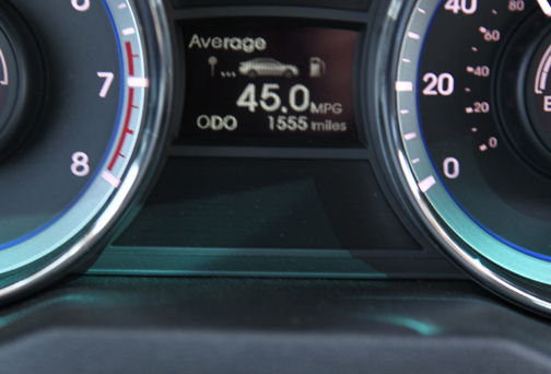 De vuelta de Baton Rouge fue que hicimos la prueba de eficiencia del Sonata 2011. Sergio y este servidor obtuvimos el tecer lugar con una eficiencia promedio de 44.2mpg. Fuimos superados por otras dos parejas de periodistas que lograron 48.8 y 52.1. Este número por encima de 52 millas, también lo logró nuestro amigo y colega Jaime Flórez en semejante prueba un mes antes en San Diego, California. Sin embargo, en un instante del recorrido, según indicó el marcador de consumo instantáneo, nuestra unidad de pruebas alcanzó las 45mpg de eficiencia. |