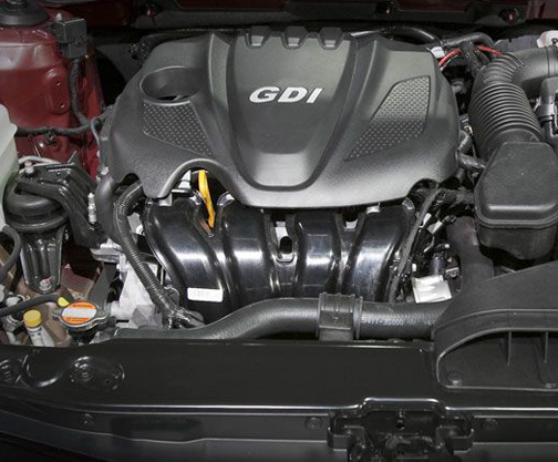 Continuando con esto de la síntesis, el Sonata contemporáneo ahora trae un solo motor. Pero los propietarios del anterior Sonata no extrañarán al V-6 Lambda del modelo precedente, pues la planta motriz que mueve el coche es un nuevo 4 cilindros de 2.4 litros de 16 válvulas, de inyección directa (GDI) con Sincronización de Válvulas Duales Continuamente Variable (DCVVT), que genera 198hp de potencia —200 en el modelo SE gracias a su sistema de escape de caños duales—, y 186Lb x pie de torsión. Tales números hacen a este Sonata el vehículo más potente del nicho. Este nuevo motor es suficiente para los gustos de cualquier conductor y para el peso del automóvil. Y lo más importante, con un rendimiento de 24mpg en la ciudad y 35 en la autopista, el Sonata del momento rebasa en eficiencia al Camry, al Accord, al Altima, al Fusion y al Malibu. Hyundai prevalece en el No. 1 de la lista de los fabricantes más eficientes, con un promedio de 30.1mpg (le siguen Honda y Volkswagen en segundo y tercer lugar respectivamente). |