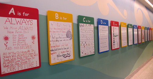 A través del pizarrón del abecedario, los niños pacientes de St. Jude expresan sus sentimientos desde una letra inicial |