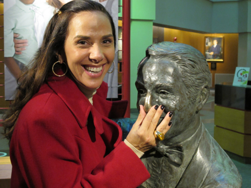 La nariz del busto de Danny Thomas se ha vuelto dorada a fuerza de tanto tacto. Tocarla trae buena suerte. |