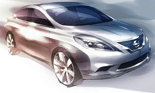 Posted Oct.14/2010 • Según lo confirmado por Nissan, la próxima generación del Versa será vendida en los Estados Unidos en algún momento del año que viene como modelo 2012. El sketch del auto (arriba) denuncia una forma más escultural, con un aspecto más compacto y de más porte que el actual Versa.
