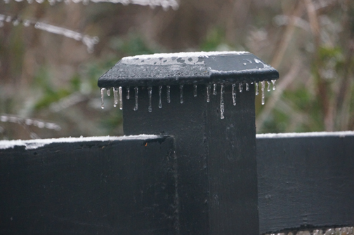 | A lo largo de la manejada el frío nos acompañó en el camino, y pudimos ver todavía huellas de la intensa nevada de prácticamente sólo horas antes, como los carámbanos por doquier, que siempre atraen la atención de un floridano. |