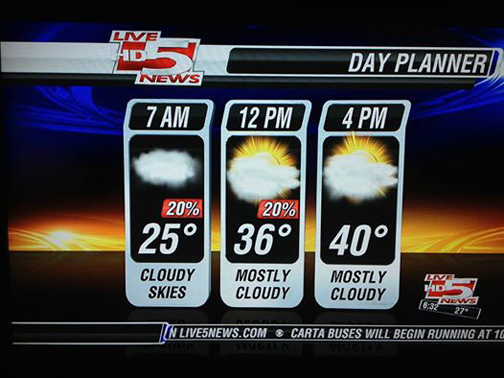 Al día siguiente, cuando nos disponíamos a la prueba de manejo, la televisión local en su noticiario matutino indicaba que a esa hora, las 7 de la mañana, el termómetro marcaba 25ºF y el pronóstico prometía como el valor más alto nada menos que al meridiano, 36 (para quienes no están familiarizados con los grados Fahrenheit, recordamos que en ese sistema de medición el indicador de 32 corresponde a 0º en Celsius, que es el punto de congelación). |