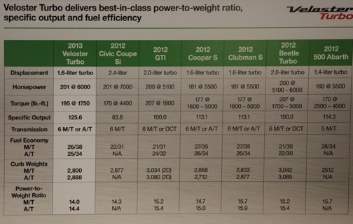 No nos vamos a ocultar para decir que una vez en el mercado, del Veloster, personalmente compraríamos el turbo. Y son muchas las razones: su styling es más agresivo atendiendo a sus pretensiones deportivas, es más potente y tan eficiente en carretera como el de inyección regular: hace 38mpg (en la ciudad no; el Veloster “normal” logra 29, y el turbo, 26). El Veloster normal genera 138hp y el turbo 201. En torsión también lo supera: 195 libras por pie contra 123. Pero en proporción es superior, porque es un motor más pequeño, 1.6 litros, mientras que el Veloster ordinario es de 1.8.