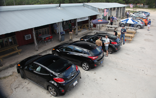 | Condujimos al día siguiente los dos vehículos en una ruta hacia el Sur desde Austin, de alrededor de 90 millas, para almorzar en el Baja BBQ Shack Lucky Sailor en la marina la pie del Canyon Lake con parada en Riley’s Place, una ruta con ambiente tan vaquero y tejano que si algún día Hyundai se animara a fabricar su camioneta como proyectó hace años, para hacérnosla probar debería volver sobre las huellas de este camino. |