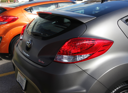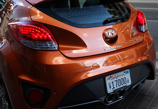 ¿Cómo se identifica visualmentre el Veloster Turbo del Veloster regular? En primer lugar, el Veloster Turbo se ofrece ahora en el color titanio mate que tan de moda está. Pero básicamente por su grill sobredimensionado de hexágono achatado (negro), rims de distinta configuración y, por detrás, los caños de escape redondos como los neblineros al frente, y dos grandes reflectores rojos detrás, de igual geometría. |