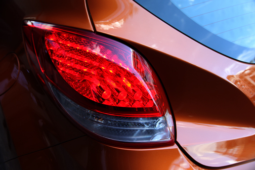 | Comenzamos la travesía manejando el Elantra GT, que también nos complació. El Elantra cupé es la versión de dos puertas del Elantra de cuatro, y como todo coche de dos puertas es más bello que su homólogo de cuatro. Su diseño es más grácil y coherente que el Elantra sedan. |