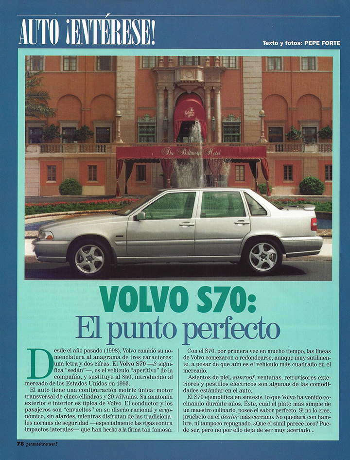Copia facsimilar del artículo sobre el VOLVO S70