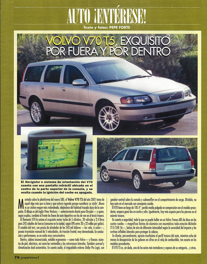 Copia facsimilar del artículo sobre el VOLVO V70 T5